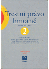 Učebnice Trestní právo hmotné – dílo autorského týmu katedry trestního práva právnické fakulty Univerzity Karlovy a externích spolupracovníků pod vedením prof. dr. Oto Novotného – vychází v nakladatelství právnické literatury CODEX již potřetí. Toto vydání vzniklo přepracováním předchozího vydání z roku 1995 s přihlédnutím k legislativním změnám i k vývoji judikatury a trestněprávní nauky v posledních letech. Těžiště učebnice je ve výkladu základních pojmů a institutů v oboru trestního práva hmotného. Trestněprávní novely vydané po listopadu 1989 představují první kroky zásadní demokratické trestněprávní reformy zaměřené jednak na překonání totalitních deformací platného trestního práva, jednak na jeho modernizaci v souladu s mezinárodněprávními závazky i světovými trendy. Proto se učebnice neomezuje pouze na teoretické výklady a na výklady platného trestního práva, a u vybraných problémů formuluje k platné úpravě své výhrady, případně návrhy de lege ferenda (viz např. problematiku pojmu trestného činu, právního omylu, penitenciární diferenciace, zavedení probace, systematiky zvláštní části, vojenských trestných činů, zákona na ochranu míru). Autoři vynaložili nemálo energie i na dosažení náležité pedagogické a didaktické úrovně učebnicových výkladů, usilují zejména o výkladovou názornost a přístupnost, mimo jiné rozborem příkladů. Mezi přílohami učebnice figurují i tabulky a grafy charakterizující zejména vývoj kriminality a její strukturu, aplikované tresty, složení vězeňské populace aj., a týkající se zčásti i předválečných let. Učebnice vychází ve dvou svazcích: I. Obecná část, II. Zvláštní část. Je určená především studujícím práv, ale bude cenným pramenem poznání i pro soudce, přísedící, advokáty, státní zástupce, policisty a podnikové právníky, nepochybně ji však uvítá i širší právnická a laická veřejnost.