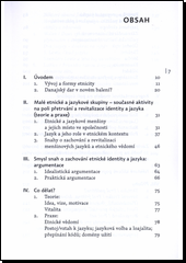 Současný svět je vystaven silným globalizačním a unifikačním tendencím. Tato skutečnost zásadním způsobem ovlivňuje řadu oblastí života společnosti. Mezi ně patří také sféry jazyka a etnicity, v nichž sílí procesy asimilace. Odhaduje se, že ze šesti tisíc dosud existujících jazyků světa je okolo 90 % bezprostředně ohroženo zánikem. Text knihy se zabývá fenoménem etnicity a problematikou menšinových jazyků - především snahami o jejich zachování a znovuoživení. Kniha podrobně dokumentuje řadu úspěšných případů etnicko-jazykové revitalizace - jak z teritoria Evropy, tak i jiných světadílů. Součástí práce jsou i rozsáhlé přílohy, poprvé publikované v češtině, stejně jako obsáhlý seznam relevantní literatury.