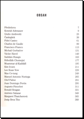 Kniha přináší portréty dvaadvaceti politických vůdců současného světa. Jsou zde popsáni politici, kteří působily po druhé světové válce. Byli to diktátoři nebo demokraté, stali se součástí politických dějin své země, byli charakterističtí notnou dávkou originality a politické výraznosti. Nesmazatelně ovlivnili osudy svých států a národů, někteří z nich tyto státy přímo vybudovali, jiní přinášeli nová systémová řešení, revoluční změny, politické reformy. Jejich osudy nelze oddělit od osudů jejich zemí.