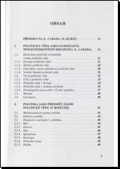 Vývoj politické vědy jako samostatného společensko-vědního oboru. Předmět studia politologie. Metodologie, základní pojmy a kategorie. Komparativní politologie. Politická filozofie. Ideologie. Politické systémy a formy vlády. Politické strany, stranické systémy atd. Sborník je dílem českých politologů. Poskytuje základní orientaci v oboru a informuje o stavu politologického bádání v ČR.