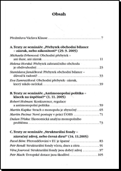 Publikace obsahuje texty ze tří ekonomických seminářů, které Centrum pro ekonomiku a politiku uspořádalo ve druhé polovině roku 2005. Nejobsáhlejší jsou příspěvky ze semináře s názvem Přebytek obchodní bilance – zázrak nebo zákonitost?, dále jsou zde příspěvky ze seminářů Antimonopolní politika – klacek na úspěšné? a Strukturální fondy – zázračný zdroj nebo černá díra?.