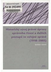 Historický vývoj právní úpravy správního řízení a dalších postupů ve veřejné správě v českých zemích (1918-2005). V Olomouci: Právnická fakulta UP Olomouc ve spolupráci s nakl. Periplum a Filozofickou fakultou Univerzity Palackého, 2007, 445 s. Stu