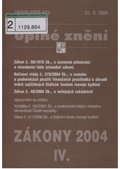 Česko. Zákon č. 50/1976 Sb., o územním plánování a stavebním řádu (stavební zákon): Nařízení vlády č. 370/2004 Sb., o rozsahu a podmínkách použití finančních prostředků k úhradě úvěrů zajištěných Státním fondem rozvoje bydlení. Zákon č. 40/2004 Sb., o veřejných zakázkách. Český Těšín: Poradce, 2004. 64 s. Zákony 2004. Aktualizace. IV/3.