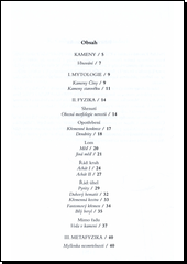 Autor v textech o kamenech poeticky propojuje rozličné souvislosti i jevy. Vnímá zákonitosti, které přesahují čas a jemně dovádí čtenáře k myšlence, že vše, (včetně člověka), je jedinou součástí kosmického celku. Kameny představují něco prapůvodního. Skrze ně můžeme pohlédnout závojem času a dotknout se tajemství dob dávno minulých. Autor popisuje různé druhy kamenů, které se nacházejí na odlišných místech a v různých dobách. Líčení má metafyzický podtext. Publikace je doplněna barevnými fotografiemi.