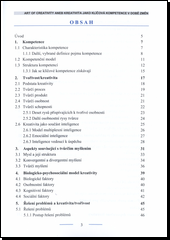 Kniha „ART OF CREATIVITY .........”sestává ze dvou obsahově odlišných částí. Kapitoly 1-4 jsou více teoreticky pojaté, snaží se postihnout podstatu kreativity a zachytit její aspekty, zatímco druhá, podstatně rozsáhlejší část knihy – počínaje 5. kapitolou - má spíše praktický význam a zabývá se metodami a použitím kreativního myšlení v praxi. Pojetí kreativity je praktické, zaměřené do komerční oblasti, jak ostatně nasvědčuje podtitul, a nechává stranou ostatní sféry kreativní reality, zejména umění. Autoři vycházejí z výkladu pojmu kompetence, uvádějí základní teorie, pokoušejí se vysvětlovat kreativitu z mnoha stran, zabývají se kreativní osobnostní, schopnostmi, vztahem k inteligenci, aspekty tvůrčího myšlení, biologicko-psychosociálním modelem kreativity. Teoretická část obvykle otráví čtenáře složitým výkladem, zde je však podána teorie názorně, pochopitelně – a dokonce i čtivě. Složité věci jsou vysvětleny vcelku jasným způsobem. Více prostoru věnují autoři praktickému využití kreativity – řešení problémů, praktickému použití, metodám a také bariérám. Využívají zkušeností z velké a inovativní výrobní organizace. Proto má kniha značný přínos pro praktiky. Není zbytečně upovídaná (na některých místech je až lakonicky stručná) a na celkem malém prostoru dokáže vyjádřit vše co je v této oblasti podstatné. Pěkně, jasně a stručně popsané metody: stačí vzít si knihu před sebe a podle návodů postupovat. Inspirace pro každého, kdo chce změnit věci kolem sebe nebo svůj vlastní způsob myšlení.