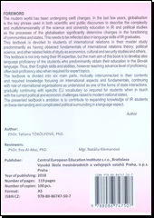TÖKÖLYOVÁ, Tatiana. Selected topics of international relations: textbook for students of international relations. Praha: Vysoká škola mezinárodních a veřejných vztahů Praha, o.p.s., 2018. 1 CD-ROM (99 stran).
