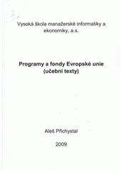 PŘICHYSTAL, Aleš. Programy a fondy Evropské unie: (učební texty). Vyd. 1. Praha: Vysoká škola manažerské informatiky a ekonomiky, 2009, 95 s. ISBN 978-80-86847-34-4.