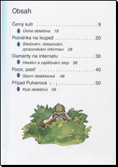 V samostatných příbězích mohou čtenáři spolu s dětskými hrdiny hledat zloděje kufru nebo vzácných hodinek, dostanou pozvánku na loupež, budou muset najít ztraceného pejska a vyhnout se nastražené pasti. Z krátkého naučného textu, který následuje za každým příběhem, se dozví např. to, jaká je úloha detektiva, jak získává infomace či zajišťuje stopy apod. Začínající čtenáři si doplňující text, který je psán menším písmem, mohou přečíst s rodiči.