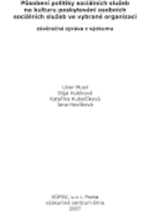 MUSIL, Libor. Působení politiky sociálních služeb na kulturu poskytování osobních sociálních služeb ve vybrané organizaci: závěrečná zpráva z výzkumu. 1. vyd. Praha: VÚPSV, výzkumné centrum Brno, 2007, 7 s. ISBN 978-80-87007-56-3.