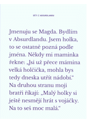 KWIATKOWSKA, Magdalena Natalia. Děti z Absurdlandu. Vydání první. Praha: AVU, 2016, 55 s. ISBN 978-80-87108-62-8.