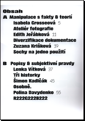 Sborník textů, které z různých úhlů pohledu promýšlí způsoby a možnosti fotografické dokumentace uměleckých výstav a uměleckých děl obecně.