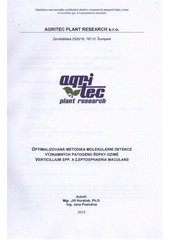HORÁČEK, Jiří a Jana POSLUŠNÁ. Optimalizovaná metodika molekulární detekce významných patogenů řepky ozimé Verticillium spp. a Leptosphaeria maculans. Šumperk: Vydal Agritec Plant Research v nakl. Agritec, 2012. ISBN 978-80-87360-11-8.