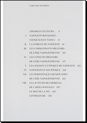 Kniha představuje část rozsáhlé sbírky pohlednic s napoleonskou tématikou doprovázenou česko-francouzskými texty. Kniha je rozdělena do kapitol podle témat věnovaných výjimečné osobnosti Napoleona Bonaparta, jeho rodině, vojenským velitelům, válečným událostem konce 18. a počátku 19. století i samotným vojákům. Závěrečná část pak přibližuje některé události a významné osobnosti napoleonské epochy. Vše je doplněno údaji o autorech uměleckých předloh pohlednic. Text česky a francouzsky.