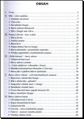 Během staletí se na půdě křesťanského světa v rámci nábožensko-rituálního prožívání života vyvinul zcela specifický systém a řád barev s morálními a symbolickými konotacemi... V každé kultuře se v postavení garantů společenského řádu objevují zcela specifické dílčí skupiny obyvatel, jejichž úkol je v mnohém odlišný od většinové společnosti. To se nutně musí projevit v odlišném oděvu, který je nositelem snadno rozlišitelných vnějších symbolů odkazujících ke stupni hierarchické podřízenosti. Jen tak je možné dosáhnout skutečné životaschopnosti velkých organizovaných celků.Pro dnešního člověka je asi nejpochopitelnějším příkladem hodnostní systém zavedený v ozbrojených složkách, reprezentující výkonný rozměr státní autority. A nemůžeme vynechat ani různá církevní společenství. Během staletí se na půdě křesťanského světa v rámci nábožensko-rituálního prožívání života totiž vyvinul zcela specifický systém a řád barev s morálními a symbolickými konotacemi, které člověk dnešní doby používá podvědomě. Ke správnému „čtení“ tohoto typu neverbální komunikace je nutné znát kulturně-antropologické pozadí židovsko-křesťanské tradice, jež měla zcela zásadní vliv na utváření euro-amerického moderního civilizačního modelu. Jednotlivé kapitoly se na pozadí historických souvislostí věnují příslušným barvám, jejich symbolice a rozdílnému užití v profánním světě a v bohoslužbě.