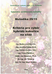 LOUČKA, Radko. Kritéria pro výběr hybridů kukuřice na siláž: uplatněná certifikovaná metodika. Vydání první. Troubsko: Zemědělský výzkum, spol. s r.o., 2015. 63 stran. Metodika, 29/15.