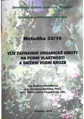 BADALÍKOVÁ, Barbora. Vliv zapravení organické hmoty na půdní vlastnosti a snížení vodní eroze: uplatněná certifikovaná metodika. 1. vydání. Troubsko: Zemědělský výzkum, spol. s r.o., 2016. 41 stran. Metodika, 33/2016.