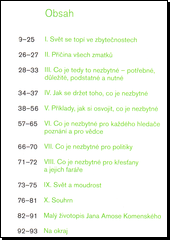 Kniha je souborem podnětných myšlenek spisu Unum necessarium Jana Amose Komenského (zbytečnosti světa, příčina všech zmatků, co je to nezbytné, jak se držet toho nezbytného, co je nezbytné pro hledače pravdy, politiky, křesťany, svět a moudrost).