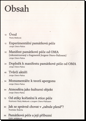 Sborník představuje nový způsob myšlení o disciplíně památkové péče. Přináší český překlad esejů Jorge Otero-Pailose, profesora a ředitele památkové péče na Kolumbijské universitě (NY), v dialogu s texty českých odborníků na danou problematiku.