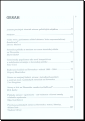 GYÁRFÁŠOVÁ, Oľga, ed. a MESEŽNIKOV, Grigorij, ed. Vláda strán na Slovensku: skúsenosti a perspektívy. Překlad Janka JUREČKOVÁ. Bratislava: Inštitút pre verejné otázky, 2004. 156 stran. Štúdie a názory.
