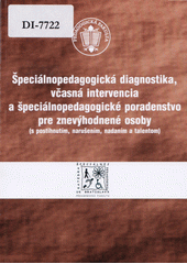 Špeciálnopedagogická diagnostika, včasná intervencia a špeciálnopedagogické poradenstvo pre znevýhodnené osoby (s postihnutím, narušením, nadaním a talentom): zborník príspevkov z medzinárodnej vedeckej konferencie realizovaný v rámci riešenia projektu VEGA č. 1/3655/06 Identifikácia, analýza a návrh modelu kl'účových špeciálnopedagogických intervencií (depistáž, diagnostika, poradenstvo, stimulácia, raná intervencia, prevencia) pre znevýhodnené deti raného a predškolského veku a ich užšie sociálne prostredie. Prvé vydanie. V Bratislave: MABAG, s.r.o., [2006?]. 424 stran.