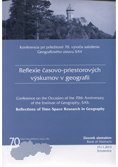 IRA, Vladimír, ed., MICHNIAK, Daniel, ed., ŠUŠKA, Pavel, ed. a ŠVEDA, Martin, ed. Reflexie časovo-priestorových výskumov v geografii: zborník abstraktov : z konferencie pri príležitosti 70. výročia založenia Geografického ústavu SAV. Bratislava: Geografický ústav SAV, 2013. 68 stran.