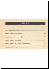 JESENSKÁ, Milena. Milena Jesenská: die Fähigkeit stehenzubleiben : Katalog der Ausstellung. 1. Aufl. Prag: Musum der tschechischen Literatur, 1998, 32 s. ISBN 80-900706-7-1.