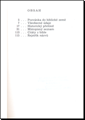 Kniha o Izraeli a hlavních památkách, které v této zemi je stále možno najít a jejichž zmínky obsahuje i Bible. V knize je řada barevných a černobílých fotografií, a mapka a plán Jeruzaléma.