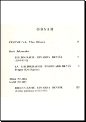 JAKOVENKO, Boris Valentinovič, Alena NOVOTNÁ a Karel NOVOTNÝ. Edvard Beneš: soupis publikací. Autorka úvodu Věra OLIVOVÁ. Praha: Společnost Edvarda Beneše, 1994, 144 s. Knižnice Společnosti Edvarda Beneše, Sv. 5. ISBN 80-901733-2-2.