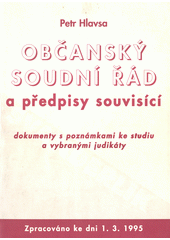 HLAVSA, Petr. Občanský soudní řád a předpisy souvisící: dokumenty s poznámkami ke studiu a vybranými judikáty. 1. vyd. Praha: Švanderlík, 1995. 562 s.