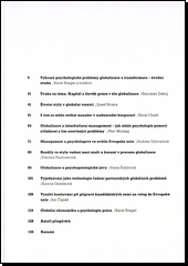 Tématicky různorodé práce (např. současný životní styl, management, aktuální psychopatologické jevy) přibližují některé problémy současné vývojové etapy. Značně diferencovaný pohled jednotlivých autorů na psychologické atributy globalizace.