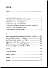 Publikace představuje výběr z novějších literárněhistorických bohemistických studií vysokoškolského pedagoga a literárního kritika Vladimíra Novotného, přednášejícího na Katedře literární kultury a slavistiky Fakulty filozofické Univerzity Pardubice. Na rozdíl od svých dřívějších knih se autor zaměřuje pouze na dva literárněhistorické okruhy: na problematiku české literatury 19. století a na literární díla z první poloviny 20. století, přičemž usiluje buď o novou interpretaci odkazu jednotlivých tvůrců, resp. konkrétního díla, anebo nahlíží jejich tvorbu prismatem novodobé literární historie i novější literární kritiky. Kromě známých spisovatelů (např. K. Klostermann, L. Klíma, K. Poláček…) se autor zabývá také tvůrčím kontextem literátů opomíjených a zapomínaných (např. J. V. Jahn, F. X. Svoboda, K. V. Černý…), jakož i knihami autorů spoluvytvářejících rusko-český (N. Terlecký) nebo česko-rakouský (německý) kulturní kontext (G. Fusseneggerová) a tvořících významnou součást naší národní literatury.