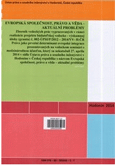 Evropská společnost, právo a věda - aktuální problémy: zborník vedeckých prác vypracovaných v rámci realizácie projektu ... Právo jako prvotní determinant evropské integrace, prezentovaných na vedeckom seminári s medzinárodnou účasťou, ktorý sa uskutočnil 27. apríla 2014 v sídle Ústavu práva a soudního inženýrství v Hodoníne v Českej republike ... Vyd. 1. Hodonín: Ústav práva a soudního inženýrství v Hodoníně, 2014. 200 s. Zborníky.