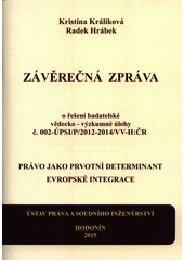 KRÁLIKOVÁ, Kristína a Radek HRÁBEK. Právo jako prvotní determinant evropské integrace: závěrečná zpráva a dokumenty o řešení badatelské vědecko-výzkumné úlohy č. 002-ÚPSI/P/2012-2014/VV-H:ČR. Vydání první. Hodonín: Ústav práva a soudního inženýrstv