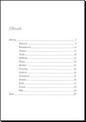 Knížka veršů plná barev má svůj příběh. Při prezentaci předešlé autorčiny sbírky Neviditelné obrazy zažertoval mladý výtvarník, že by jednotlivé obrazy šlo zviditelnit tím, že by je někdo jeden po druhém namaloval. Jenže těch takzvaně „neviditelných“ se v dotyčné sbírce nacházelo přesně sto. Myšlenka to tedy byla dobrá, jenže neproveditelná. Kdo by kupoval knihy na kila? Účastníky večera však tehdy ten nápad přenesl do výtvarného světa, do obrazotvornosti obrazů, a básnířka s malířem se domluvili, že zkusí vyvolat jakési příběhy jednotlivých barevných odstínů, ona ve verších, on v kresbách. Výsledkem snahy je tato útlá knížka. Úvodní báseň budí na jaře přírodu velkým třeskem barev, na následujících stránkách pak jedna po druhé jako by předvádějí svůj pocit či prožitek, svou vlastní krajinu, a vystupují z přítmí, do kterého se musí v závěrečném Šeru zase vrátit. Ale to už se nanovo chystá velký třesk barev, které na chvíli převládnou nad šedým zákalem; světlo přináší naději.