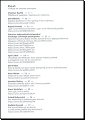 Dějinné paralely =: Historical parallels : 1938-2018 : sborník příspěvků z mezinárodní konference k 80. výročí Světového kongresu PEN klubu v Praze : 8.-9.10.2018 v Obecním domě v Praze. Překlad Martina POSPÍŠILOVÁ, překlad Šimon PELLAR. [Praha]: České centrum Mezinárodního PEN klubu, 2018. 134 stran.