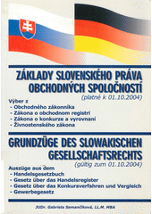 SEMANČÍKOVÁ, Gabriela. Základy slovenského práva obchodných spoločností (platné k 01.10.2004): výber z Obchodného zákonníka, Zákona o obchodnom registri, Zákona o konkurze a vyrovnaní, Živnostenského zákona. [Bratislava]: Janpa, [2005]. 110 s.