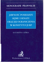 GÓRKA, Katarzyna. Jawność posiedzeń sejmu i senatu oraz jej ograniczenia w konstytucji RP. Warszawa: Wydawnictwo C.H. Beck, 2014. xxii, 195 stran. Monografie prawnicze.