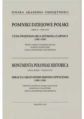 STARZYŃSKI, Marcin, ed. a ZAJCHOWSKA-BOŁTROMIUK, Anna, ed. Cuda świętego ojca Szymona z Lipnicy [1482-520] =: Miracula beati patris Simonis Lypnycensis [1482-1520]. Kraków: Polska Akademia Umiejętności, 2019. lix, 111 stran. Pomniki dziejowe Polski, Seria II - Tom XVII.