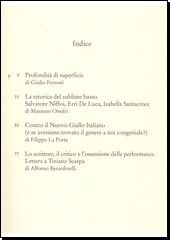 «Cari critici, ho diritto a una vera stroncatura», diceva Alessandro Baricco. «Caro Baricco, io la recensisco ma lei non mi legge», rispondeva Giulio Ferroni. È nata così, sulle pagine di «Repubblica», una delle polemiche più accese che gli annali della cronaca letteraria ricordino. Allo scontro fra uno degli scrittori italiani più venduti e uno dei critici più autorevoli, seguirono fiumi di inchiostro, svariati megabytes di blog letterari, e vere e proprie risse verbali tra semplici lettori, schierati in opposte fazioni. «E che se ne può fare lei di recensioni che del resto nemmeno ha il tempo di leggere?». Poi, Ferroni ci ha ripensato: «Baricco sta scrivendo a puntate e su “Repubblica” un nuovo romanzo che è la quintessenza del “baricchismo”. Visto che ci tiene tanto ad essere recensito, perché non accontentarlo?». E perché non allargare lo sguardo – ha aggiunto l’editore – a quella nutrita pattuglia di scrittori alla moda, che aspirano tutti ad essere criticati, a patto che lo si faccia bene? E ancora: i giornali pubblicano romanzi; e se fossero i libri a pubblicare recensioni? Ecco che il cerchio si allarga: Ferroni se la prende con Baricco e la sua «profondità di superficie»; Massimo Onofri accomuna la tripletta Niffoi-De Luca-Santacroce sotto l’etichetta del «sublime basso»; Filippo La Porta indaga sulle scarse nobiltà e le molte miserie del Nuovo Giallo Italiano; e Alfonso Berardinelli polemizza con Tiziano Scarpa: «che cos’è questo imperativo sociale che costringe tutti ad esibire tutto? Non sarà che il pudore è più sorprendente, antisociale e trasgressivo dell’esibizione?». Sul banco dei cattivi…