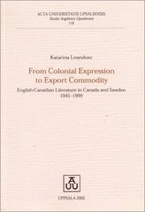 LEANDOER, Katarina. From colonial expression to export commodity: English-Canadian literature in Canada and Sweden 1945-1999. Uppsala: Acta Universitatis Upsaliensis, 2002, 273 s. Acta Universitatis Upsaliensis. Studia Anglistica Upsaliensia,, 118.