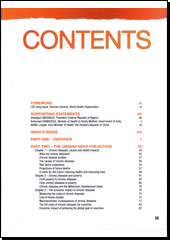 Chronic diseases - the major causes of premature adult deaths in all regions of the world - have been generally neglected on the international health and development agenda. WHO is launching a global report on chronic diseases, which will present the latest scientific information and make the case for increased and urgent action for chronic disease prevention and control. The report will review the burden of chronic diseases, major risk factors and associated trends. It will be an authoritative and state-of-the-art guide to effective and feasible interventions. The primary audience of the report will be health planners and decision-makers as well as stakeholders who can influence multisectoral government action.