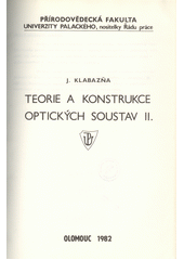 KLABAZŇA, Jaroslav. Teorie a konstrukce optických soustav: Určeno pro posl. přírodověd. fakultky Univ. Palackého. 1. vyd. Olomouc: Univerzita Palackého, 1982, 177 s.