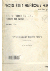 ŽÁK, Karel. Cvičení z mechanizace rostlinné výroby II: laboratorní úlohy : Určeno pro posl. oboru fytotechnického. 1. vyd. Praha: Vysoká škola zemědělská, 1983, 73 s.