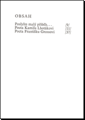 Autorova nová básnická kompozice přináší dvě skladby, ovlivněné malířským a ilustračním uměním dvou významných českých výtvarných umělců - Kamila Lhotáka a Františka Grosse.