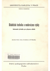 KOŤA, Jaroslav, Ivana JIROUŠKOVÁ a Jiří MATUŠKA. Didaktická technika a modernizace výuky: inf. příručka pro přípravu učitelů : určeno pro posl. fak. filozof. 1. vyd. Praha: SPN, 1986. 194 s.
