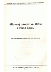 KVAPILOVÁ BRABCOVÁ, Radoslava. Mluvený projev ve škole i mimo školu: určeno pro učitele a posl. učitelství. 2., rozš. vyd. Praha: SPN, 1986. 110 s.