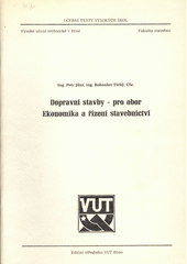 JŮZA, Petr. Dopravní stavby pro obor Ekonomika a řízení stavebnictví. 1. vyd. Brno: VUT, 1985. 109 s. Učební texty vys. škol.