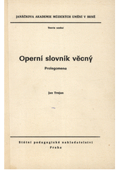TROJAN, Jan. Operní slovník věcný: Prolegomena : Určeno pro posl. katedry hud. a divadelní. 1. vyd. Praha: SPN, 1987. 243 s.