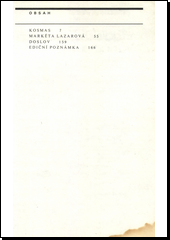 VANČURA, Vladislav. Kosmas: Markéta Lazarová : četba pro žáky zákl. a stř. škol. Ilustrace Milan ERAZIM. Kosmas 12. vyd., Markéta Lazarová 11. vyd. Praha: Mladá fronta, 1987. 165 s. Četba pro školy.