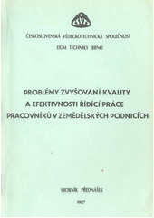 Problémy zvyšování kvality a efektivnosti řídící práce vedoucích pracovníků v zemědělských podnicích: sborník přednášek celostátního semináře se zahraniční účastí ČV společ. zeměd. ČSVTS, Brno listopad 1987. 1. vyd. Brno: Dům techniky ČSVTS, 1987.